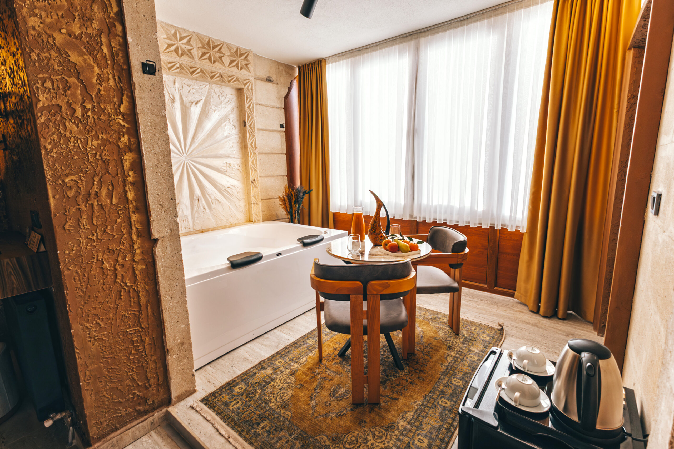 The hot tub in the room with the city view are the special features of this double room. Providing free toiletries and bathrobes, this double room includes a private bathroom with a shower, a hairdryer and slippers. The spacious air-conditioned double room provides a flat-screen TV with streaming services, soundproof walls, a minibar, a seating area as well as city views. The unit offers 1 bed.