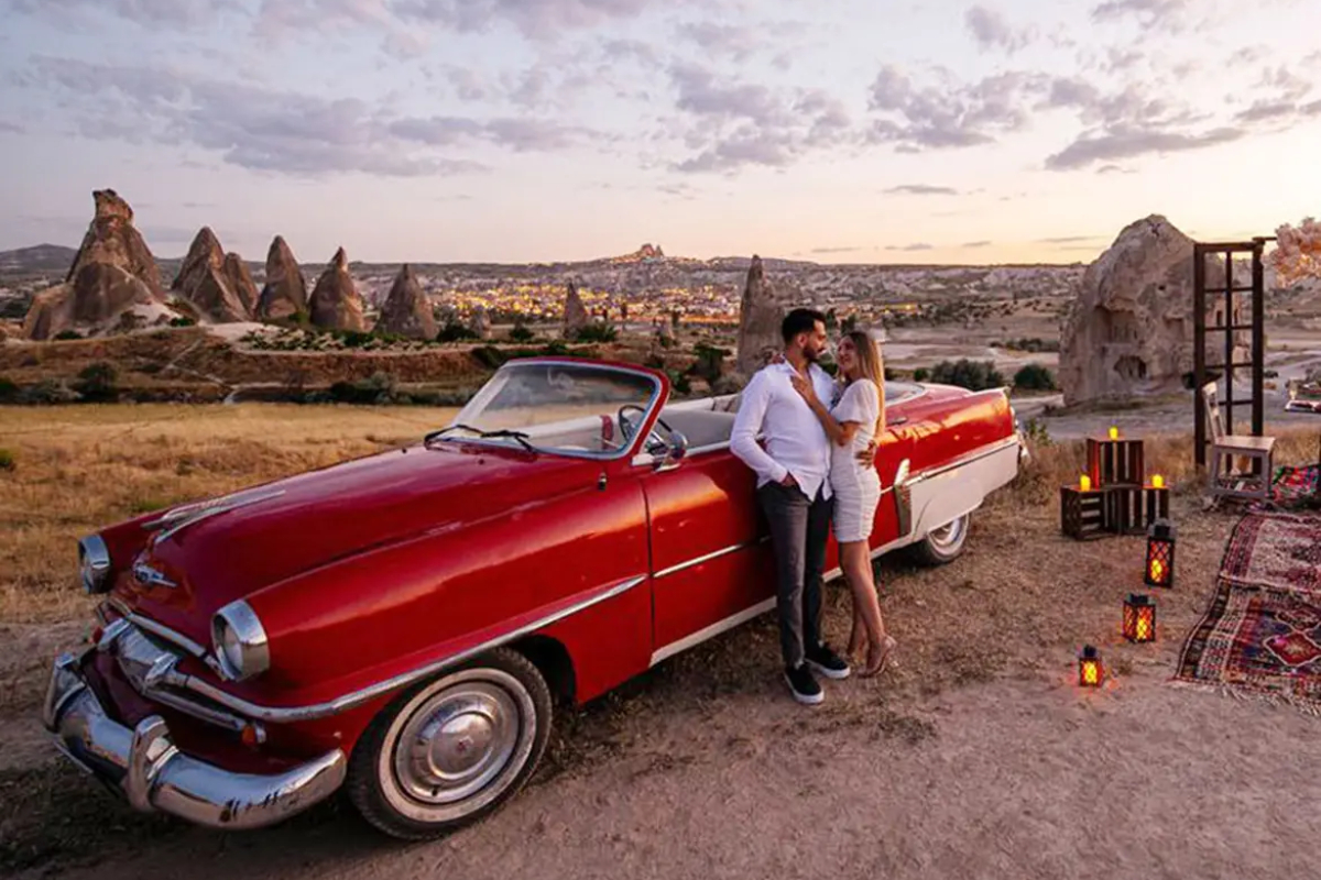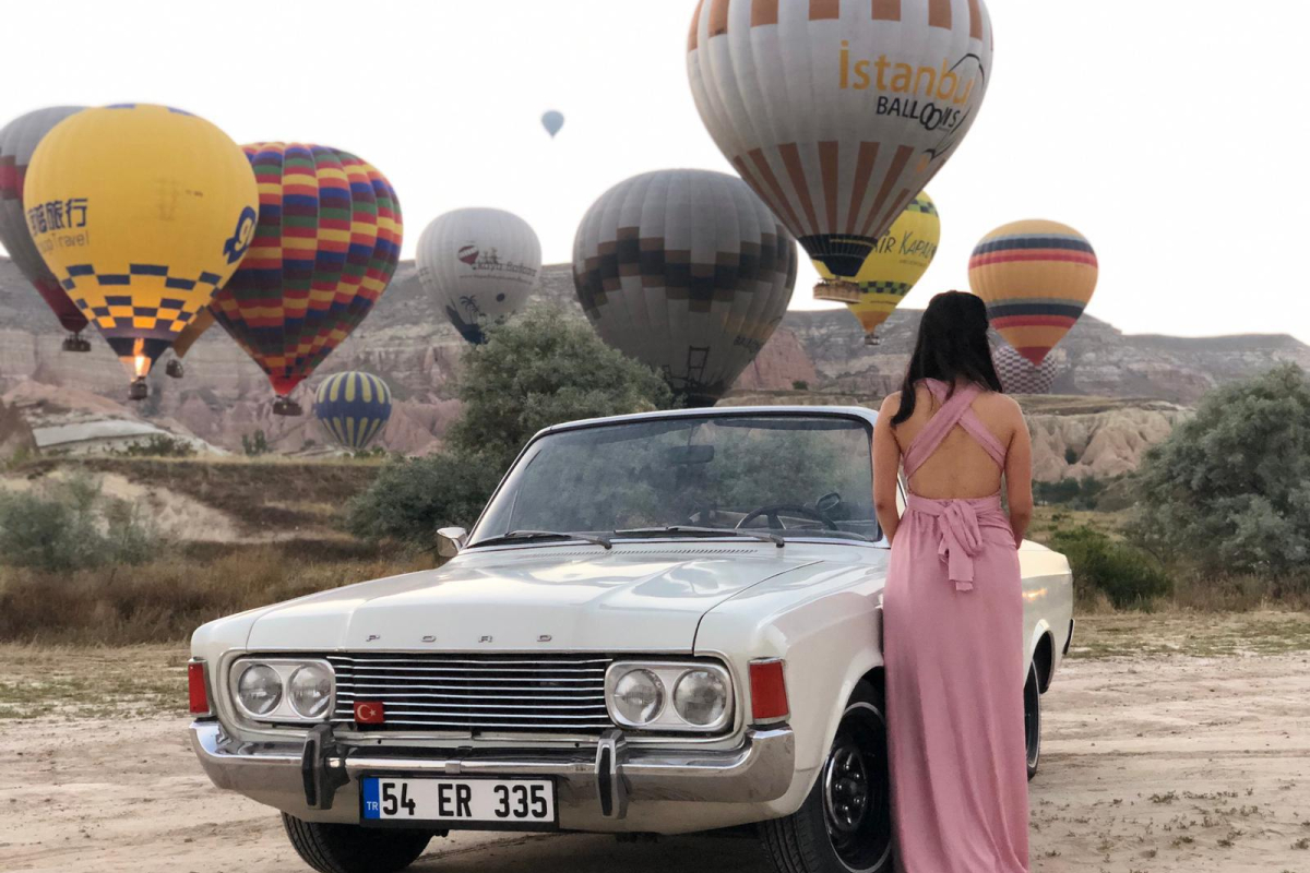 Özenle seçilmiş, bakımlı ve fotoğraf çekimine son derece uygun klasik arabalarla; Göreme, Çavuşin, Aşk Vadisi, Güllüdere ve Kızılvadi gibi Kapadokya’nın en ikonik noktalarında duraklıyor, her anı ölümsüzleştiriyoruz. Özellikle gün doğumu ve gün batımı saatlerinde, balonların gökyüzünü süslediği anlar bu turun en unutulmaz karelerini oluşturuyor.